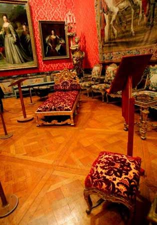 凡尔赛宫内的床、钢琴凳、油画等艺术品