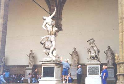 不论您是漫步在佛罗伦萨的大街小巷,还是来到博物馆、美术馆或教堂参观,定会感受到佛罗伦萨古城那浓郁的文化氛围。  米开朗琪罗的《大卫像》雕塑复制品 佛罗伦萨的雕塑品 |