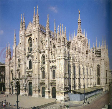 米兰大教堂是1368年根据第一任米兰大公加来西左·维斯孔蒂的命令建造的,建造历时500多年,堪称旷世杰作。相比巴黎圣母院,同样是哥特风格的米兰大教堂给我的震撼更加石破天惊。它长约168米,宽约59米,宏伟的大厅被四排柱子分开,柱子加上柱头总高约26米,大厅顶部最高处距地面45米。巨大的尺度感和错落的空间感让人立刻有自上而下的压力,觉得自己渺小如芥子。内部非常地宽广,置身于这幽暗而庄严的空间简直快忘了自己是在一大商业都市的中心。天花板很高,镶嵌有美丽的有色玻璃,抬头仰望令人赞叹不已。教堂里面的参观者甚众,但人们感到的只是不可思议的静,建筑本身的宏伟就是威严的命令。 教堂的地下是砖造的深度为4-8米的空间,这儿能看见圣·特库拉教堂的遗址。在正面深处入口开始是地下的宝物库,从正中间靠里右手的入口可以去往屋顶。教堂有135个大小尖塔,每个塔顶上全部都是基督教历史上的圣人像,默默地俯瞰苍生。大教堂巨型的彩绘玻璃窗上的图画飞满妖冶之美,色彩眩目得不可思议。阳光透进来,红红绿绿的图画让原本阴沉的大教堂弥漫出异样的轻灵和浪漫。在天气好的时候,真是一个令人心旷神怡的地方,非常适合眺望城市的全景。 米兰大教堂不仅是米兰的象征,也是米兰的中心。以大教堂为中心,有3条环形道路,其间还有不少道路连结,像米兰的俯视图一样。 在教堂最高的地方,有一扇彩绘大玻璃窗,那样高远,那样美丽,仿佛是上帝居住的地方,让人神往。那里有光,那里有宁静,那里有不可言喻的美。大玻璃窗前,高悬着巨型的十字架,庄严凛然,不知什么时候,教堂深处响起宗教歌曲,管风琴的流动里有纯净的人声吟唱。我从来没有听过这么纯净的音乐,仿佛天籁之音,直指心灵。我们静静地坐在长椅上,就在那一刻,心中安静得仿佛退潮的沙滩,所有的扰嚷和喧嚣都不复存在,曾经伤害和被伤害的往事竟然都可以一笑而过。