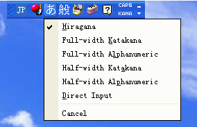 9.切换到日语输入法后按[_A]可以选择平假名、全/半角片假名、全/半角英数字等。