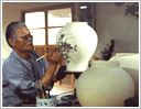 2.白瓷 在白色泥土上塗上透明釉藥燒製出來的是白瓷。白瓷的製作歷史和青瓷一樣,始於高麗初期,但到了朝鮮時期才進入全盛期。白瓷基本色調是白色,但也會加入一些藍色或乳白色。高麗時代的青瓷代表了貴族文化的富麗堂皇,而白瓷則間接表現了朝鮮時代兩班們的一塵不染的清高和節儉樸素的生活習慣。白瓷上有龍、牡丹、松樹、梅花、鶴的圖案。 | |