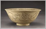 3. 粉青沙器 粉青沙器的製作方法是,在灰青色的主體上繪畫或者塗上白色泥土後燒製,再刮出花紋。雖然無法與高麗青瓷的精湛相比,但樸素且自由奔放的圖案,讓人覺得很熟悉和親近。經常可以看到魚和花的圖案。 | |